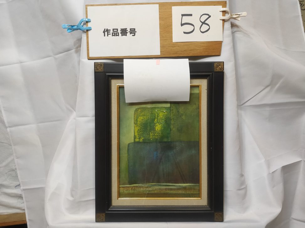 | コメント | 色合いからは想像できませんがコンクリートか何かでしょうか? 言われてみれば重そうな感じは伝わってきます。 「2007年アットホームサムさん展」に出品して、佳作になったようです。 表のガラスに出品カードが貼られていていましたが手抜きをしてはがさずに写真を撮影してしまいました。 中央やや上、傷みが激しいです。 |