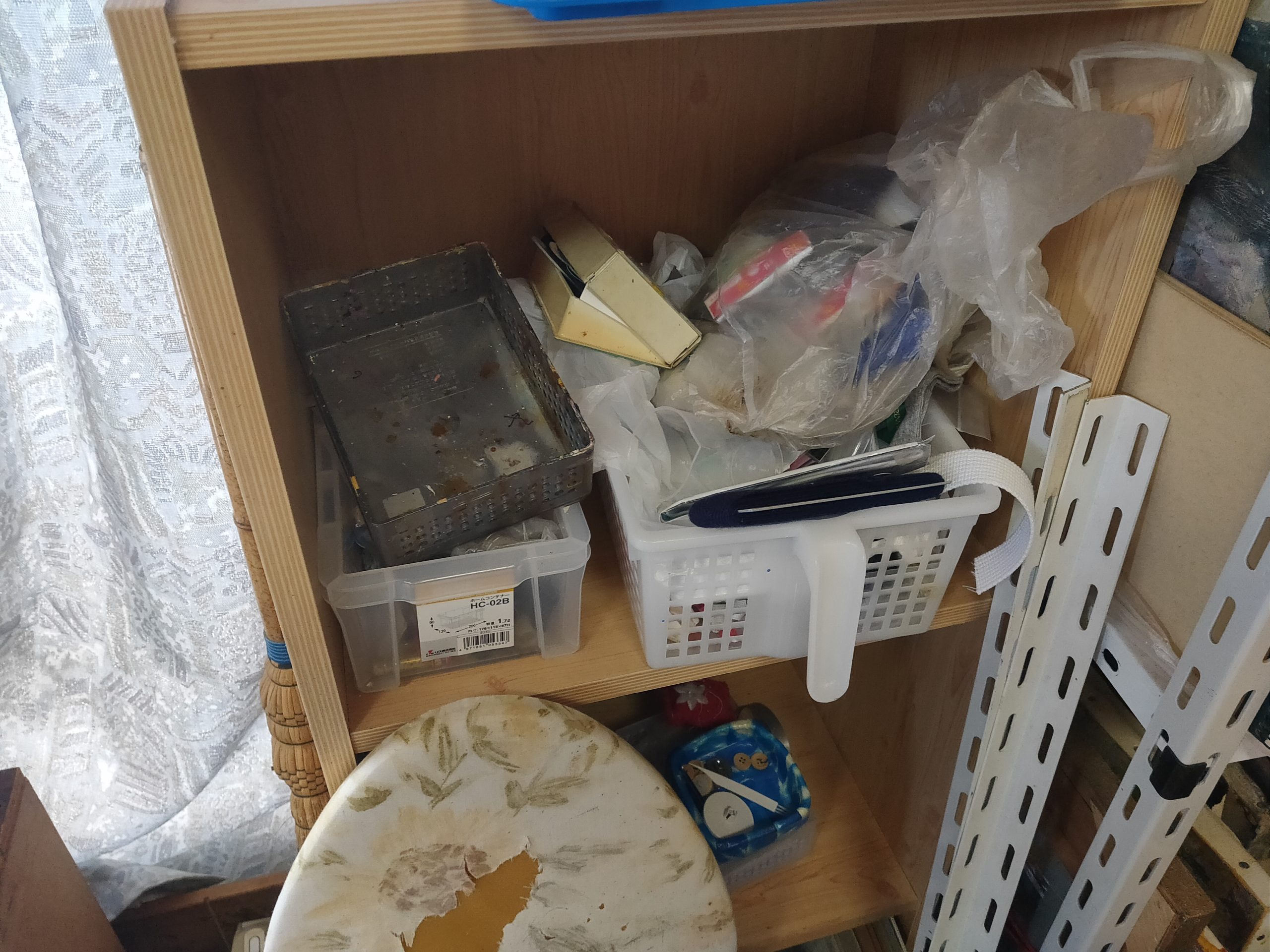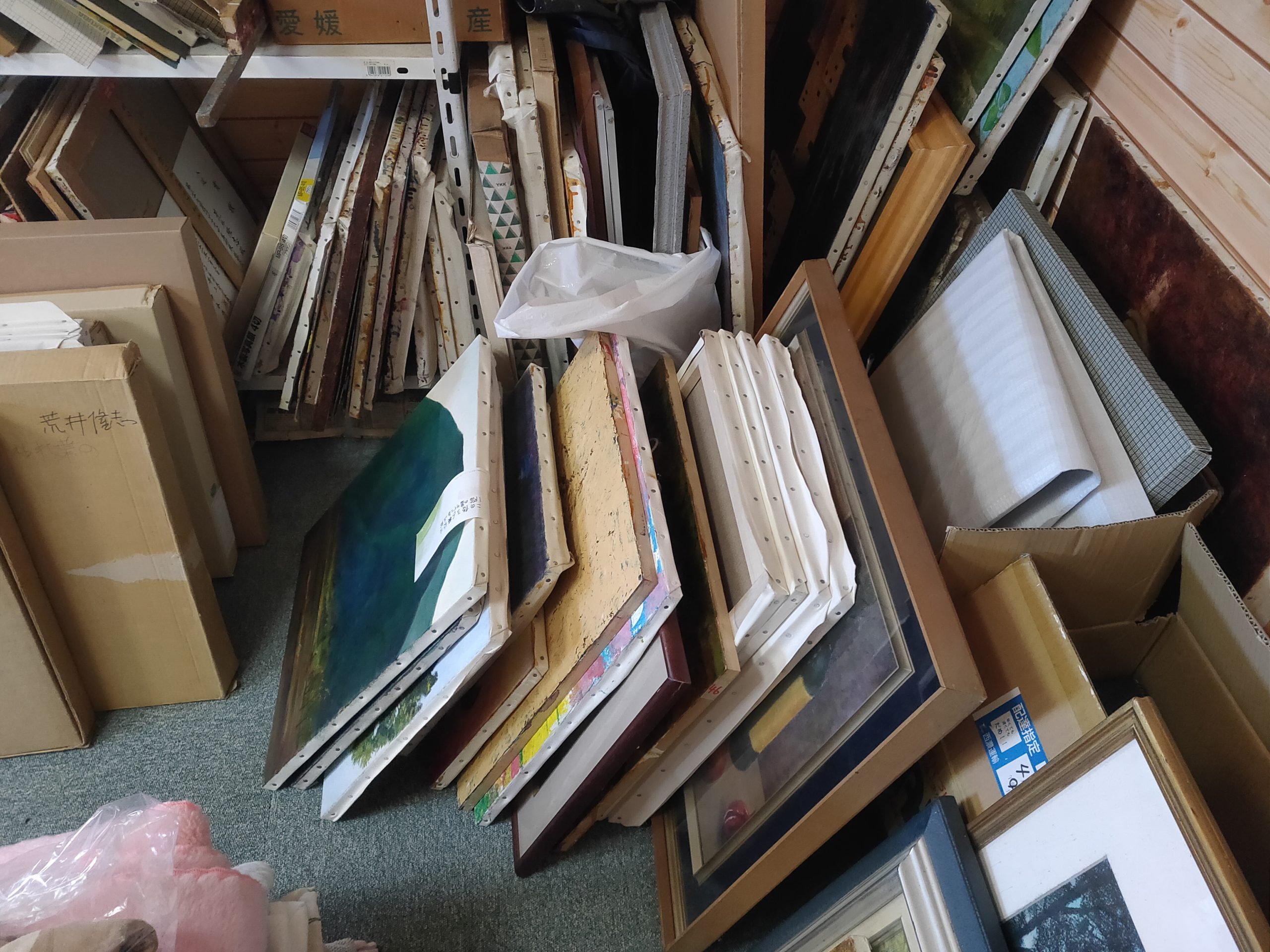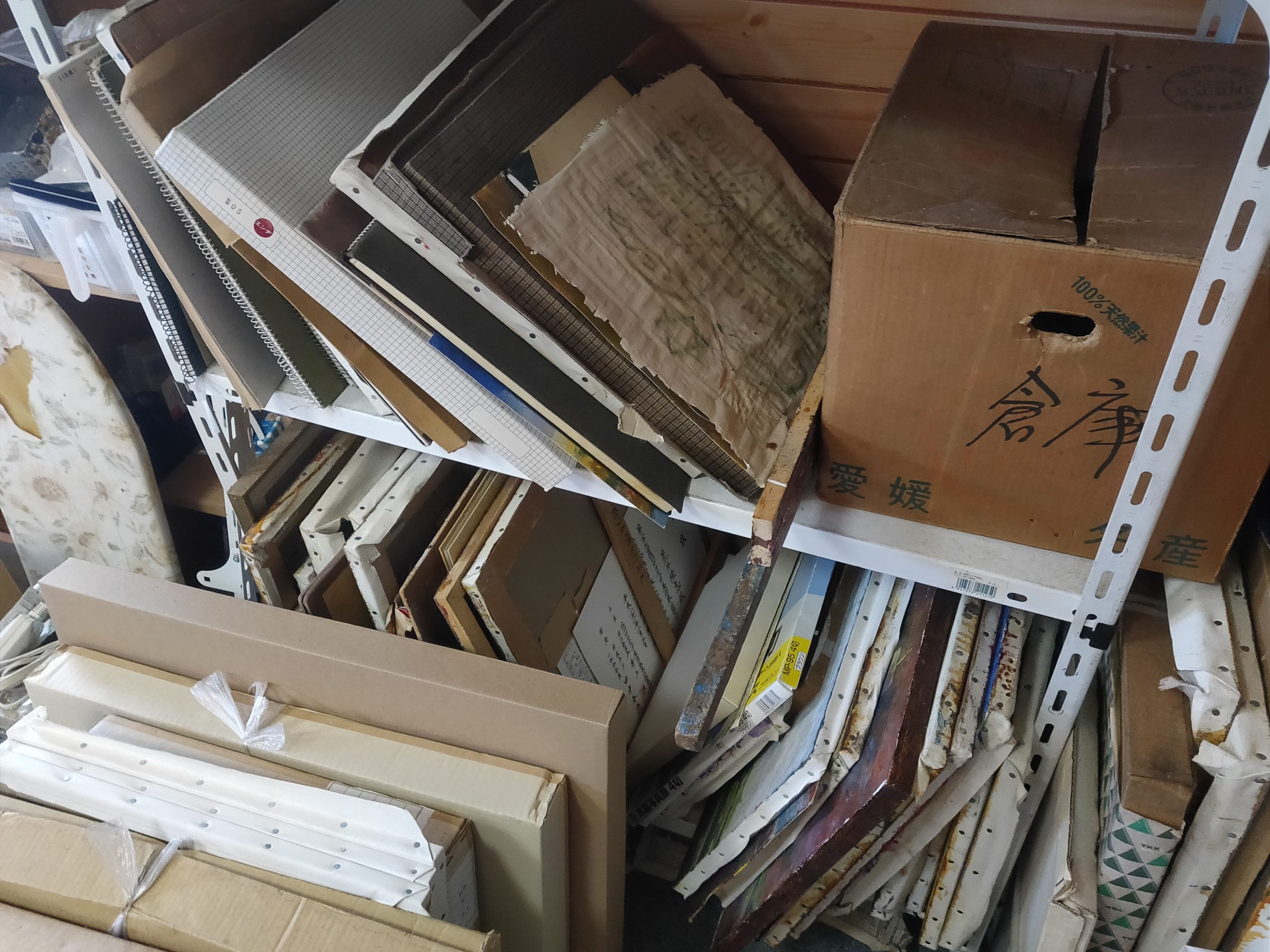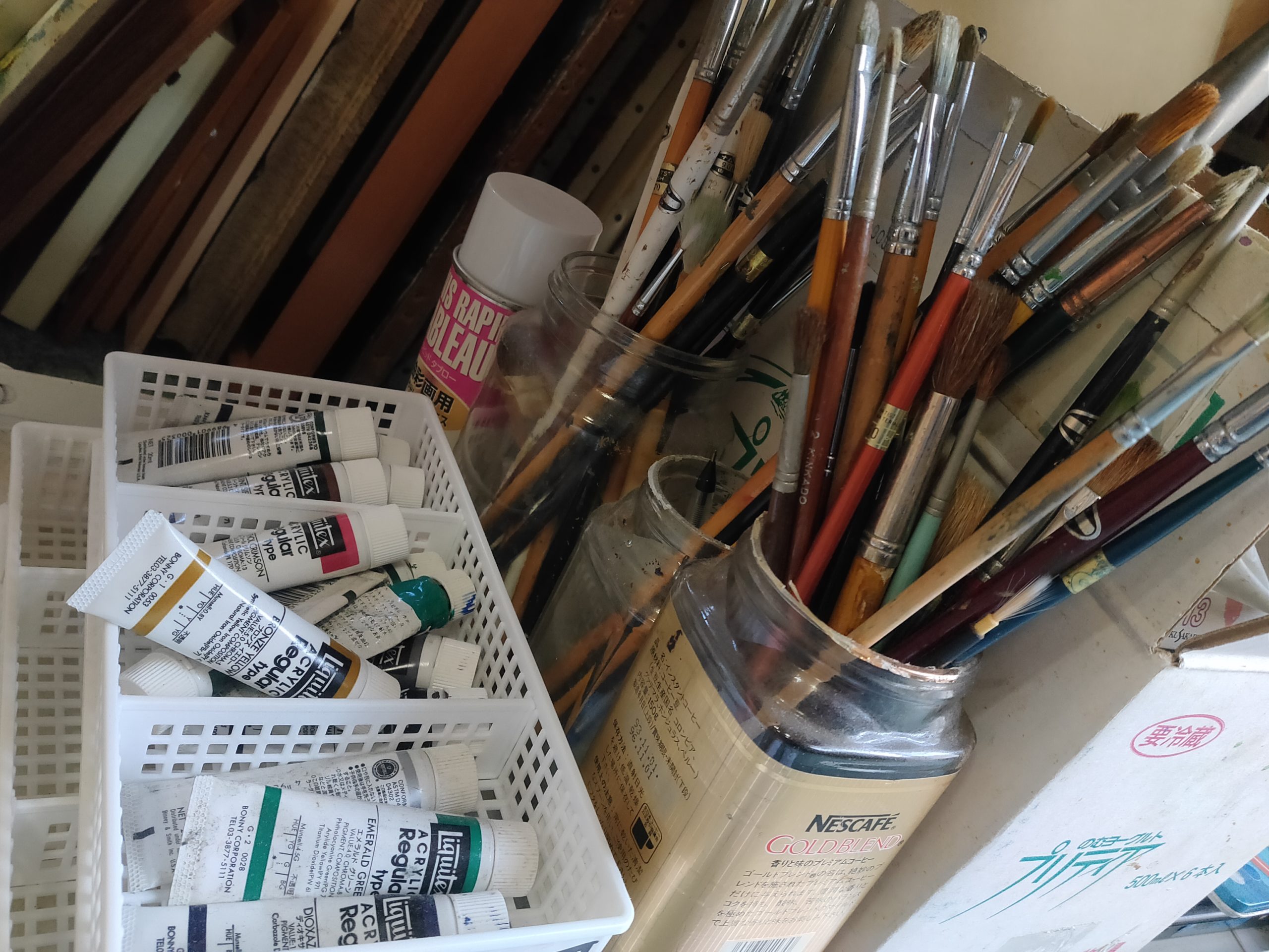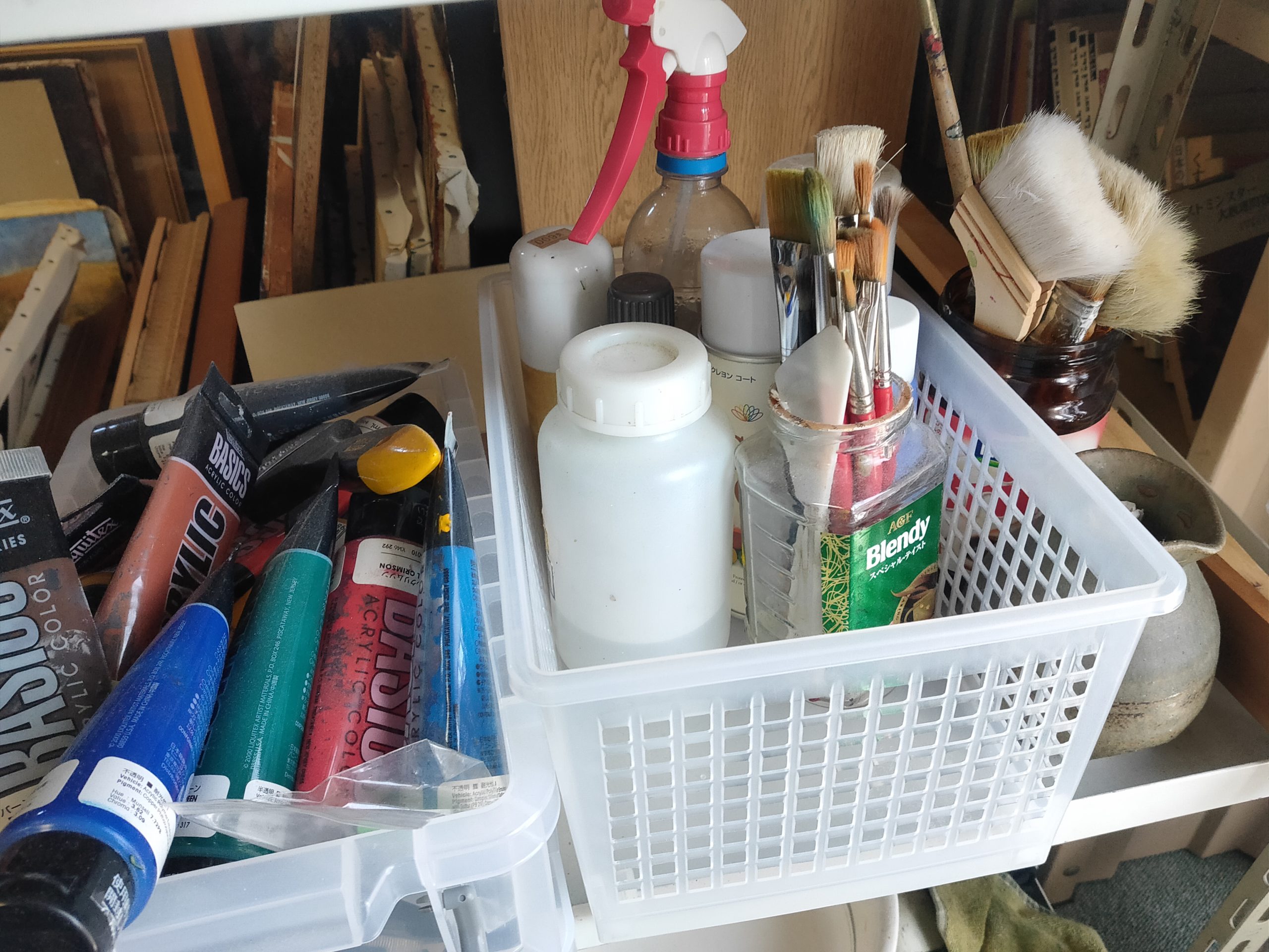 現在はだいぶ整理してしまいましたが、現役当時は足の踏み場もないような状態でした。ここで油絵を描いたり縫製をしたりしていました。